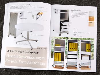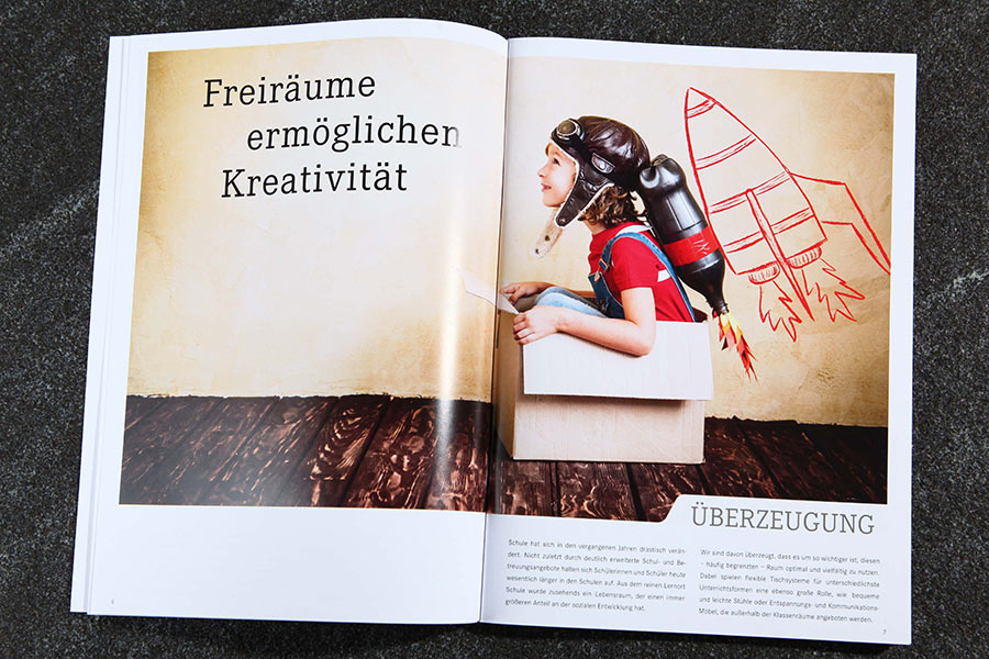 Innovative Möbel und Einrichtungselemente für Schulen sind das Schwerpunktthema von Kamira Konzepteinrichtungen GmbH. Zur Fachmesse didacta haben wir eine außergewöhnliche und hochwertige Katalog-/Imagebroschüren-Kombination entwickelt und komplett produziert. Die vielfältigen Produkte und Einrichtungslösungen werden begleitet von starken Botschaften mit emotionalen Bild- und Textelementen. Ein Sonderheft mit Neuheiten und Gestaltungselemente am Messestand nehmen das Konzept ebenfalls auf. Der Gemeinschaftsstand mit Atrado/Davant wurde ebenfalls von uns konzipiert und ausgestattet.